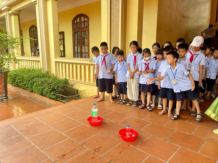Trong không khí vui tươi của ngày hội, nhà trường tổ chức nhiều trò chơi dân gian vui nhộn như kéo co, nhảy bao bố, bịt mắt đánh trống, ném vòng cổ chai, hái hoa dân chủ, cướp cờ,… Tiếng cười giòn giã, tiếng reo hò cổ vũ vang khắp sân trường, tạo nên bầu không khí sôi nổi, gắn kết và tràn đầy niềm vui. Những trò chơi không chỉ mang lại tiếng cười mà còn giúp các em rèn luyện tinh thần đồng đội, sự nhanh nhẹn và khéo léo, góp phần làm cho ngày Tết Trung thu thêm ý nghĩa và đáng nhớ.